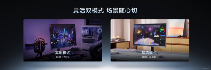 不仅能满足专业办公需求,全新一代华为MateView GT显示器在游戏性能方面同样诚意十足。对于游戏玩家而言,显示器的响应速度和流畅度至关重要。华为MateView GT支持“双模”切换功能,可以在UHD 160Hz和FHD 320Hz之间灵活选择,满足不同游戏类型对分辨率和刷新率的需求。