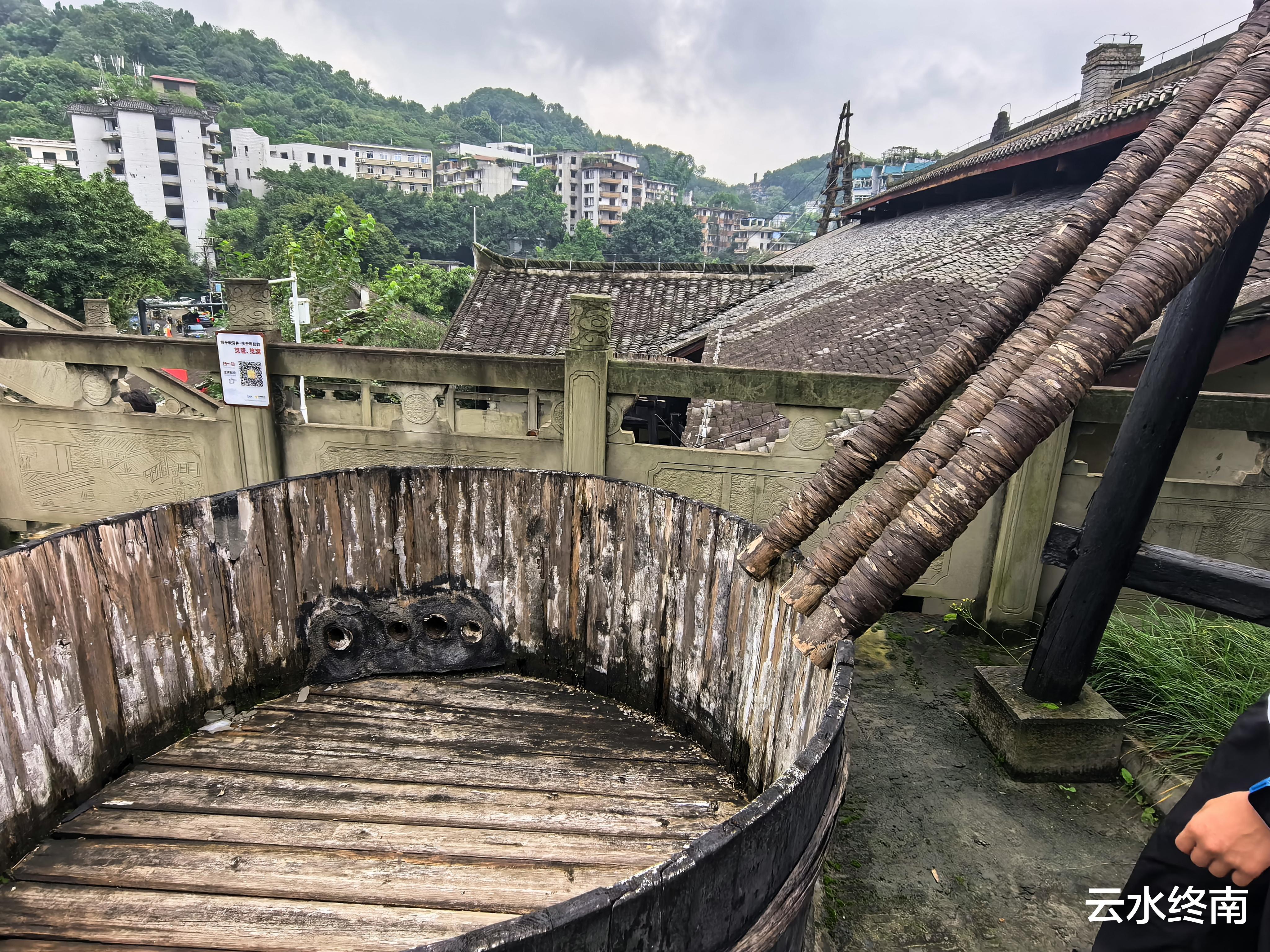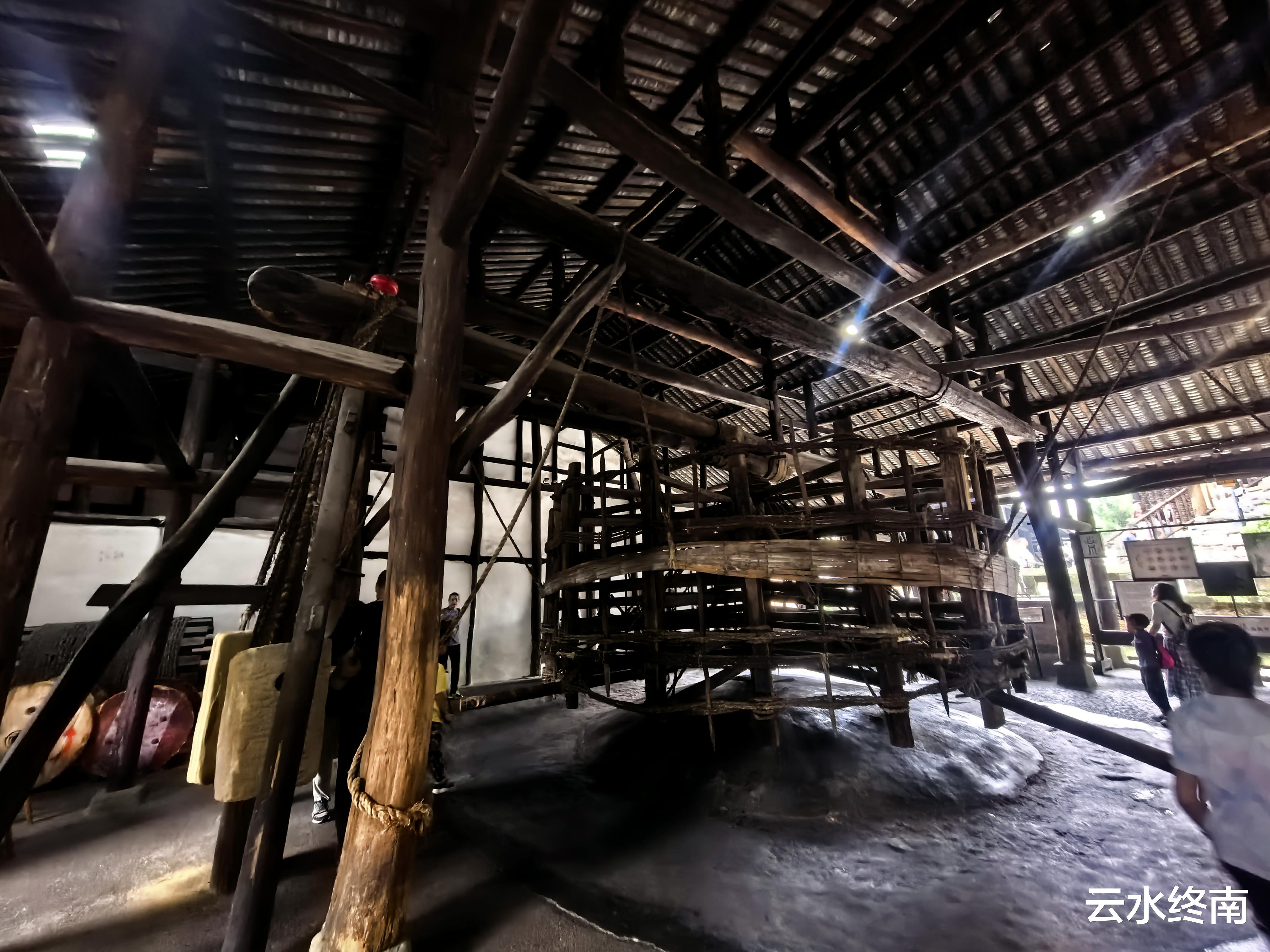 随着汲卤筒一路往上走,上面还有淋晒卤水的大盆,我估计这里是提纯卤水用的。