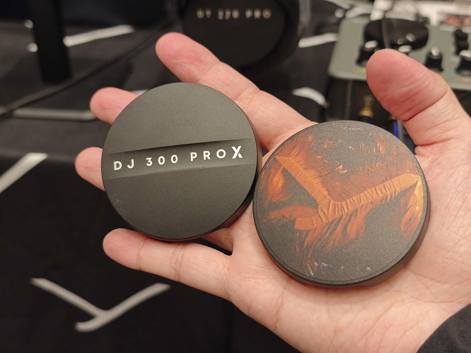 DJ300 PRO X从名字上来看就知道是DJ用途的头戴式耳机,实际听感上,低频却相对较少,中高频的透明度非常好,人声有着很强的穿透力但刺激性却并不高。除了DJ专业用户之外,DJ300 PRO X对于耳机发烧友而言,适合那些注重密度声音密度和线条感的人声爱好者和器乐爱好者,在体现音色的质感方面比较擅长。此外,DJ300 PRO X的元内外均可拆卸更换:内侧的耳罩提供了大小两个版本,小的是压耳式,大的通过在外围增加了一圈宽厚的海绵来实现了包耳式佩戴,用户可以自由选择;而单元外侧的面盖同样是可以拆换的,除了比较“严肃”的黑底白字面盖之外,现场还提供了一个图案比较炫酷的面盖可供更换,不知道后续能否自行定制。