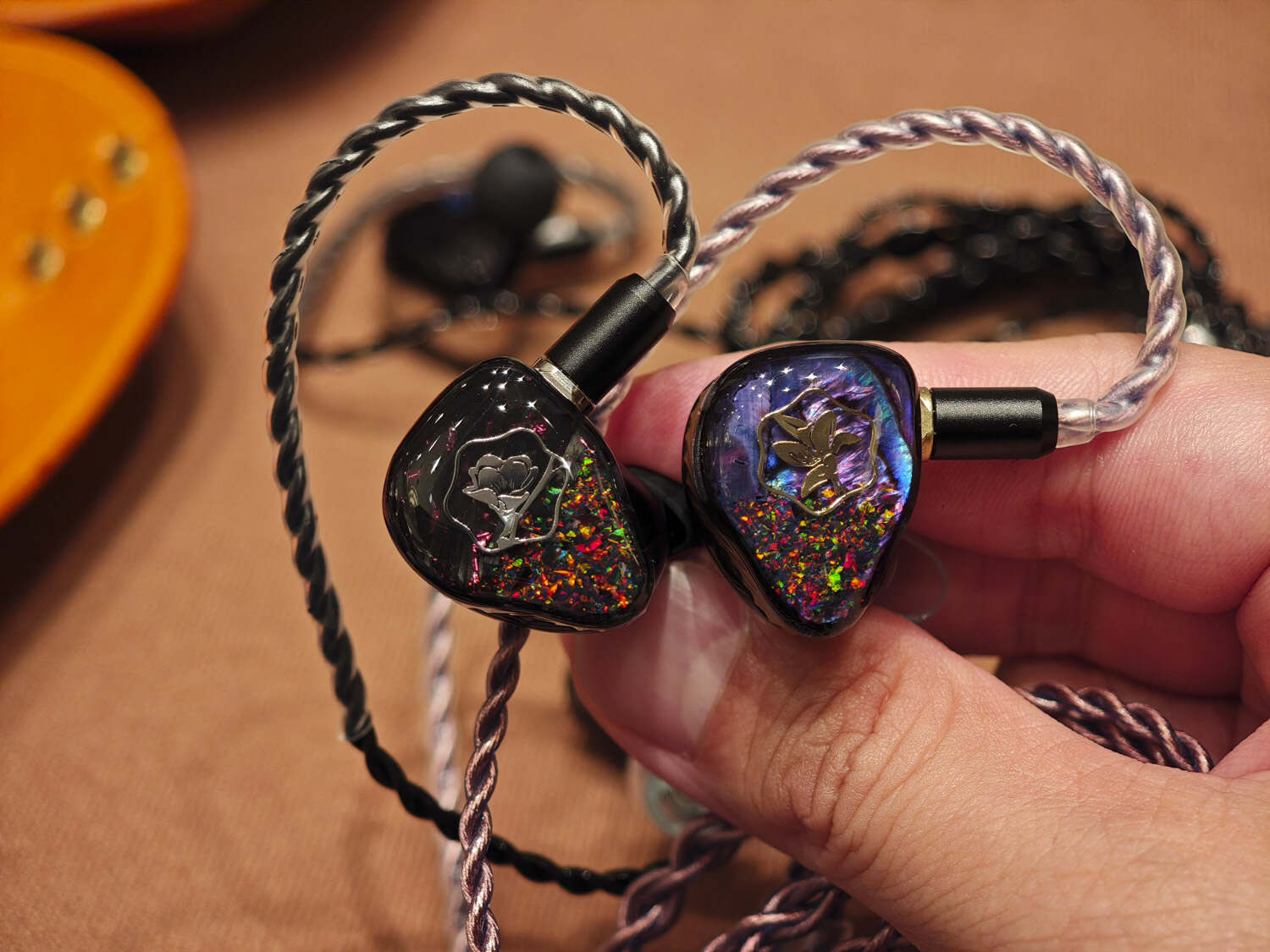 这次有时间仔细ab了一下AAW的莫卡兰和黑海棠,两款耳机有着几乎相同的外观造型和不同的配色与图案设计。从声音角度来说,纯动铁16单元的黑海棠声音密度更加出色,有着更加干净的声音背景和极高的声音凝聚度,用来听纯人声曲目或是编制不大的乐器很容易让人感知到声音的毒性;而18单元静电+动铁混合结构的莫卡兰在声音的韵味张力方面会略好一些,整体有一种宽松自然的听感,厚度也相对厚一丢丢。莫卡兰在音乐风格上的适配面会更广泛,音色的质感和层次更加丰富。总的来说,两款耳机的素质表现和易驱动性处于同一水准,价格相差也不大。声音风格上的不同给予了用户在近似的声音框架之下,细化的自由选择的机会。