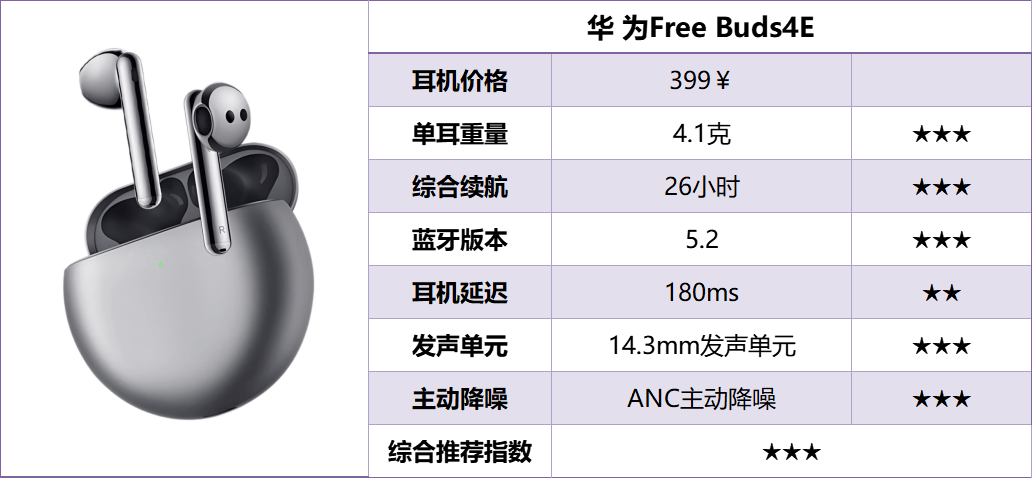 耳机单次续航约 4 小时,配合充电盒可复充 4 次,复合续航约 17小时。采用蓝牙 V5.3 技术和80ms以上的延迟表现,对于日常的听歌看剧都可以胜任。