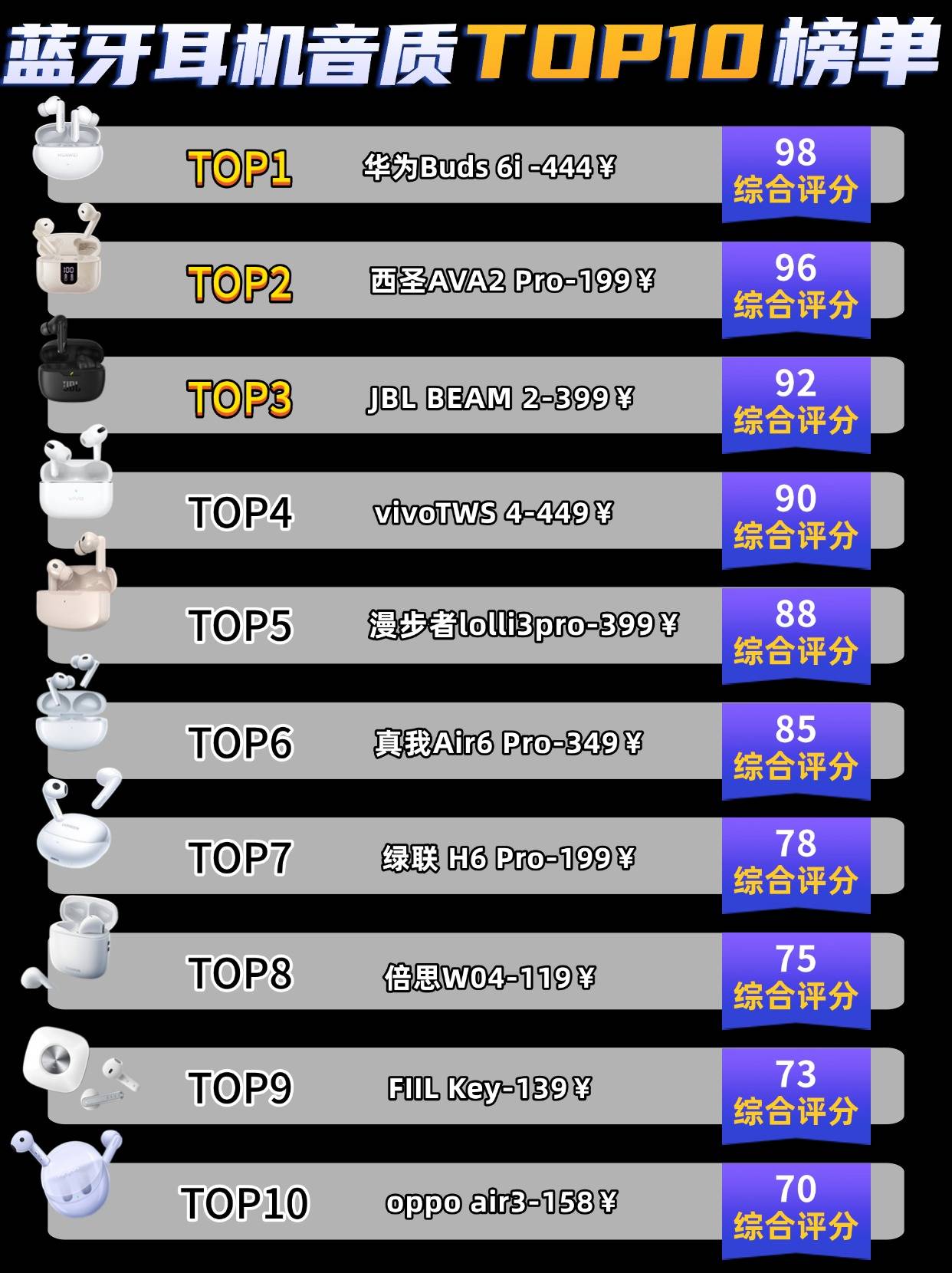 为了让大家少走弯路,我先整理了一份来自专业测评机构的热门蓝牙耳机音质排行榜(见下图),里面涵盖了目前市场上热度高、口碑好的主流机型,大家可以先参考这个榜单锁定目标!