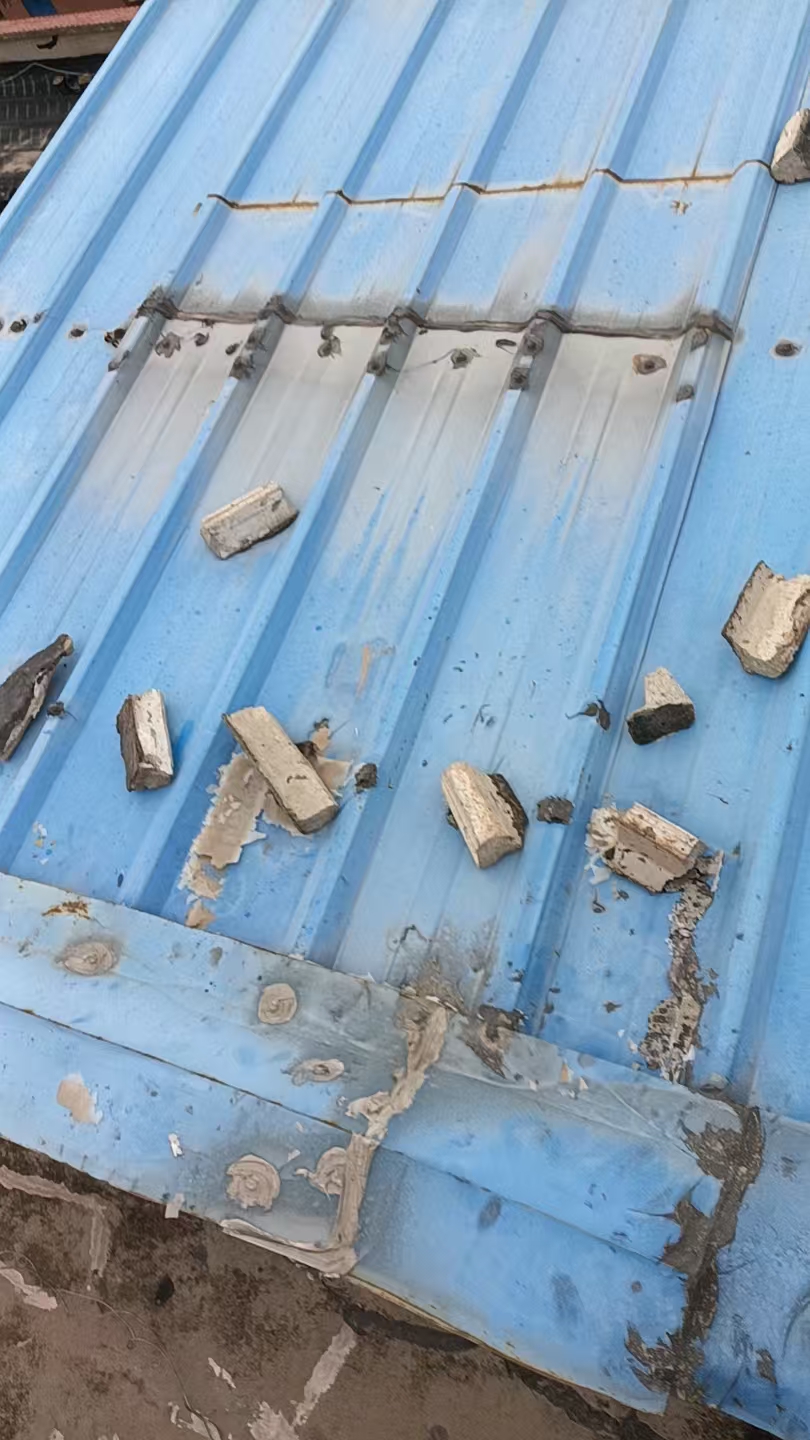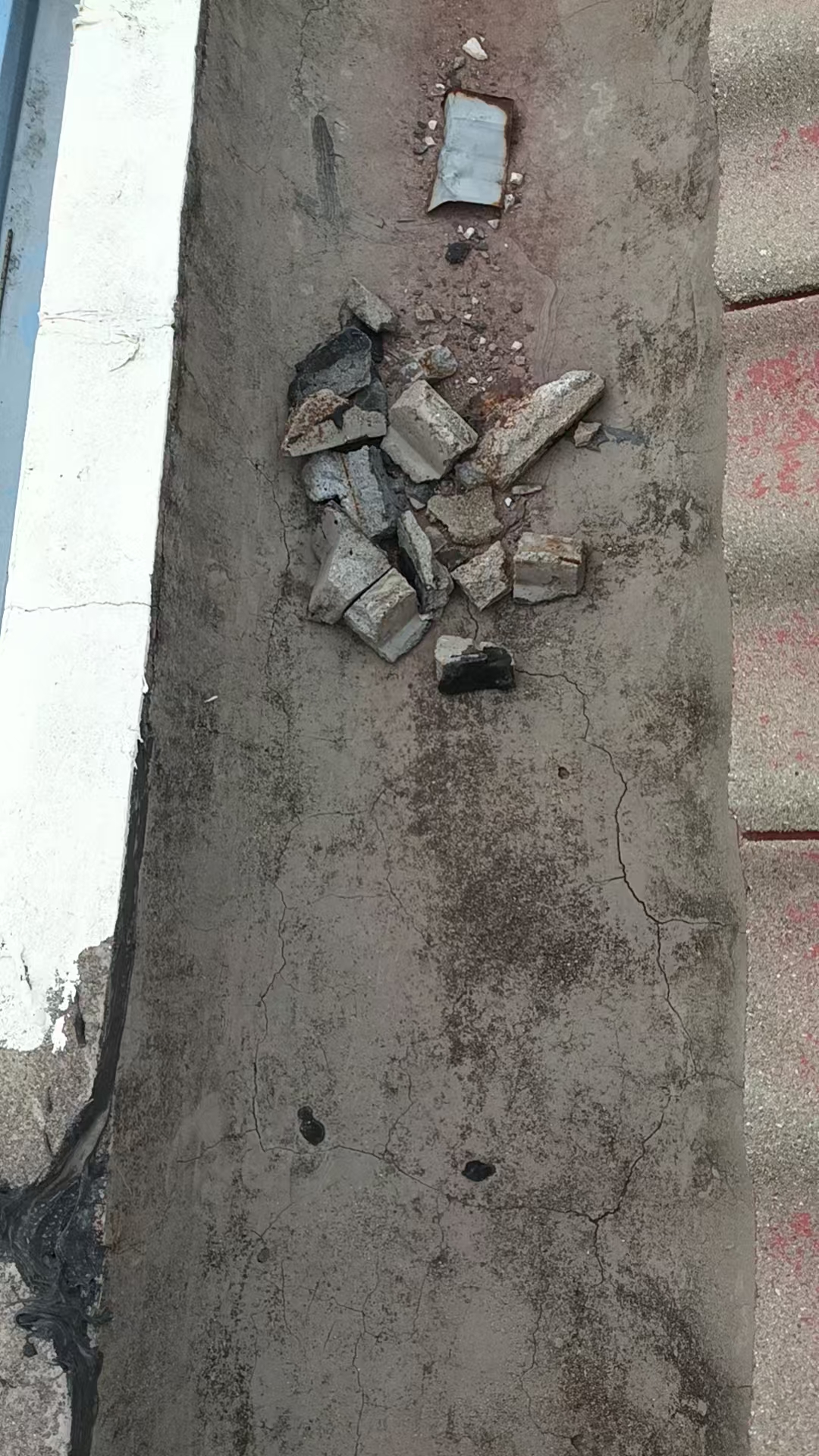 然而,近半个多月以来,受持续阴雨天气影响,该小区顶楼出现多处严重漏水现象,导致室内墙皮大面积脱落,厨房区域已有三盏灯具因进水短路损坏。据居民反映,漏水问题系老旧小区改造项目中保温墙施工队作业所致——施工队在楼顶悬挂吊篮时,其钢丝绳直接损坏了屋顶原有瓦片,该居民阳台自建屋顶区域至今仍留存大量破损瓦片,现场痕迹清晰可辨。据了解,同一小区内,本人该居民兄长所居住的顶楼住户也出现了完全相同的漏水情况,推测该问题在小区顶楼住户中可能具有普遍性。