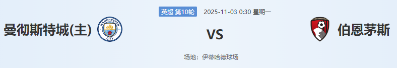 家人们!2025年11月3日凌晨00:30,英超顶级对决来了!曼城主场迎战伯恩茅斯!这哪是普通比赛啊,根本就是"蓝月亮"曼城暴打"樱桃军团"伯恩茅斯的虐菜局!但别急着下结论,伯恩茅斯最近状态回暖,今晚说不定能搞点事情出来!