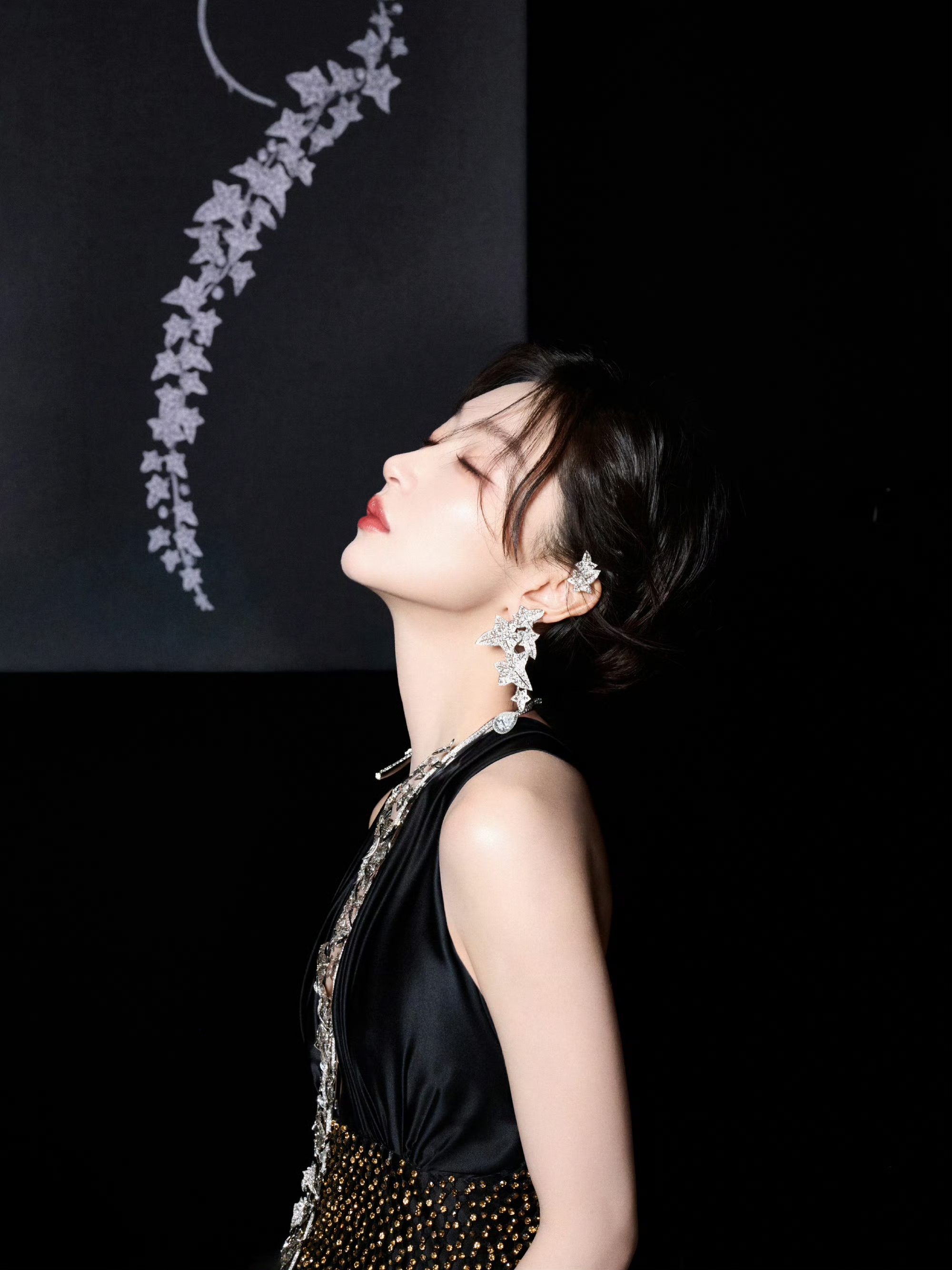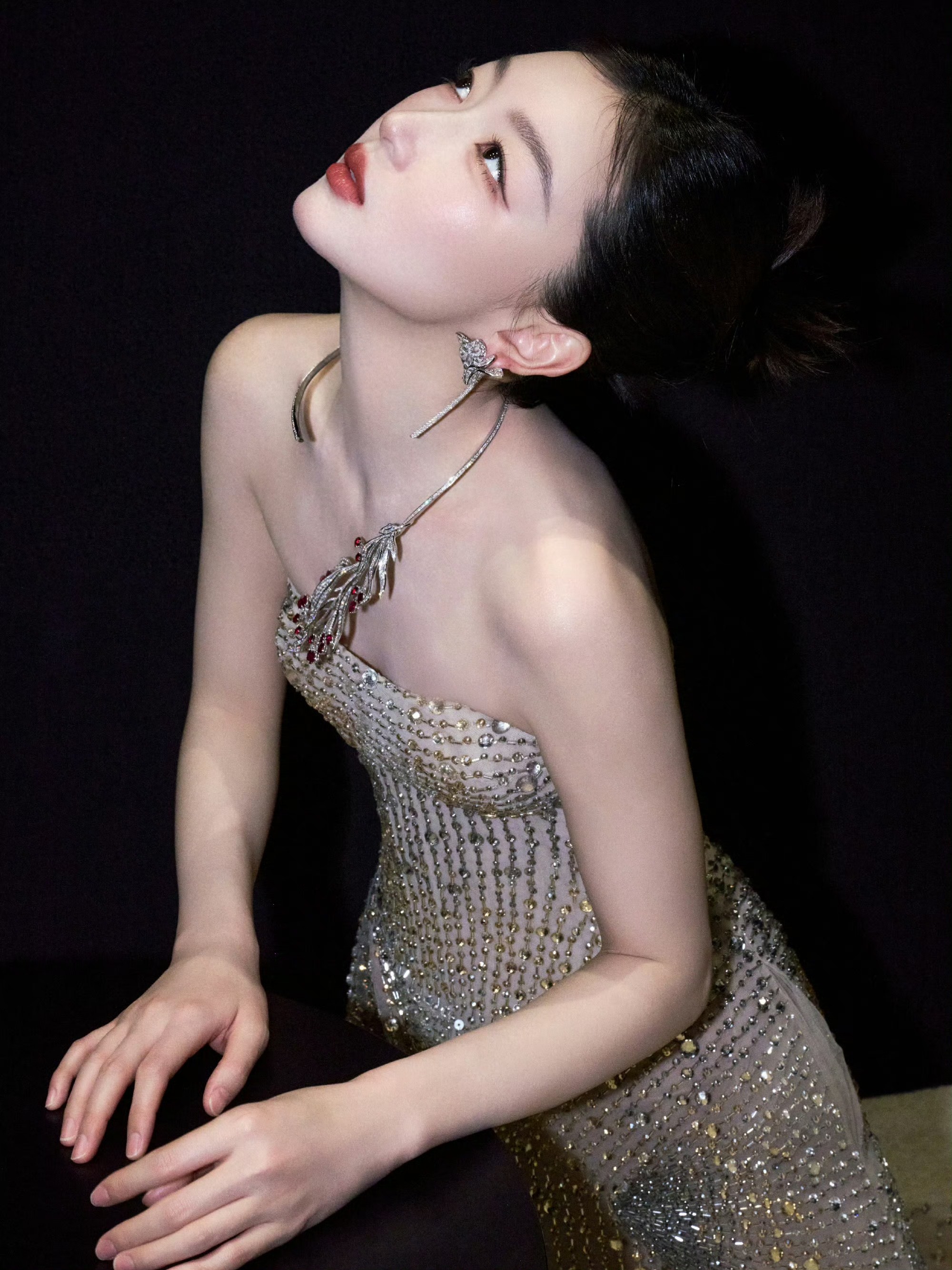 周冬雨鎏金抹胸礼裙