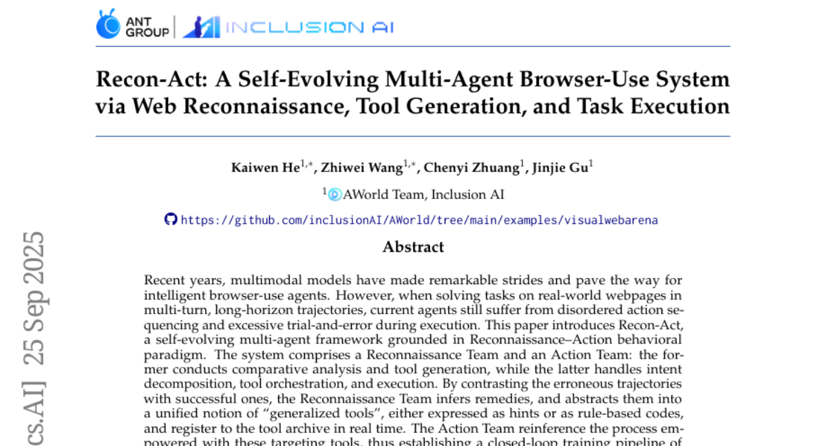 当我们面对复杂的网页任务时,比如在电商网站上找到最便宜的商品,或者在论坛里找到特定的帖子,往往需要进行大量的点击、搜索和筛选操作。现在,一个名为Recon-Act的智能系统正在改变这种状况。这项由AWorld团队的何凯文、王志伟、庄晨宇和顾金杰等研究人员开发的成果,发表于2025年9月的arXiv预印本平台(论文编号:arXiv:2509.21072v1),为我们展示了一种全新的浏览器操作方式。