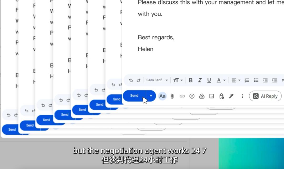 只要设定目标和定时任务,Accio Work就可以托管谈单,只有到重点需决策部分时才需要用户参与。最终,买卖双方来回6封邮件达成共识,Accio Work还贴心考虑到为对方准备发票。