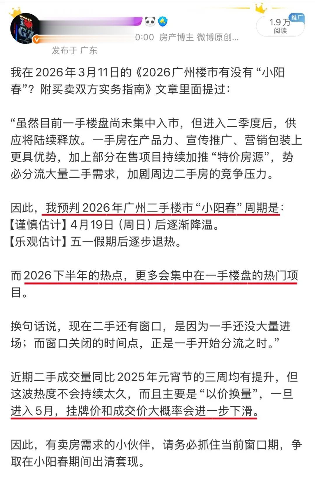 【预判二】二手小阳春的热度,最快在4月19日后降温,最迟在五一假期后退热。进入5月,挂牌价和成交价大概率进一步下滑。