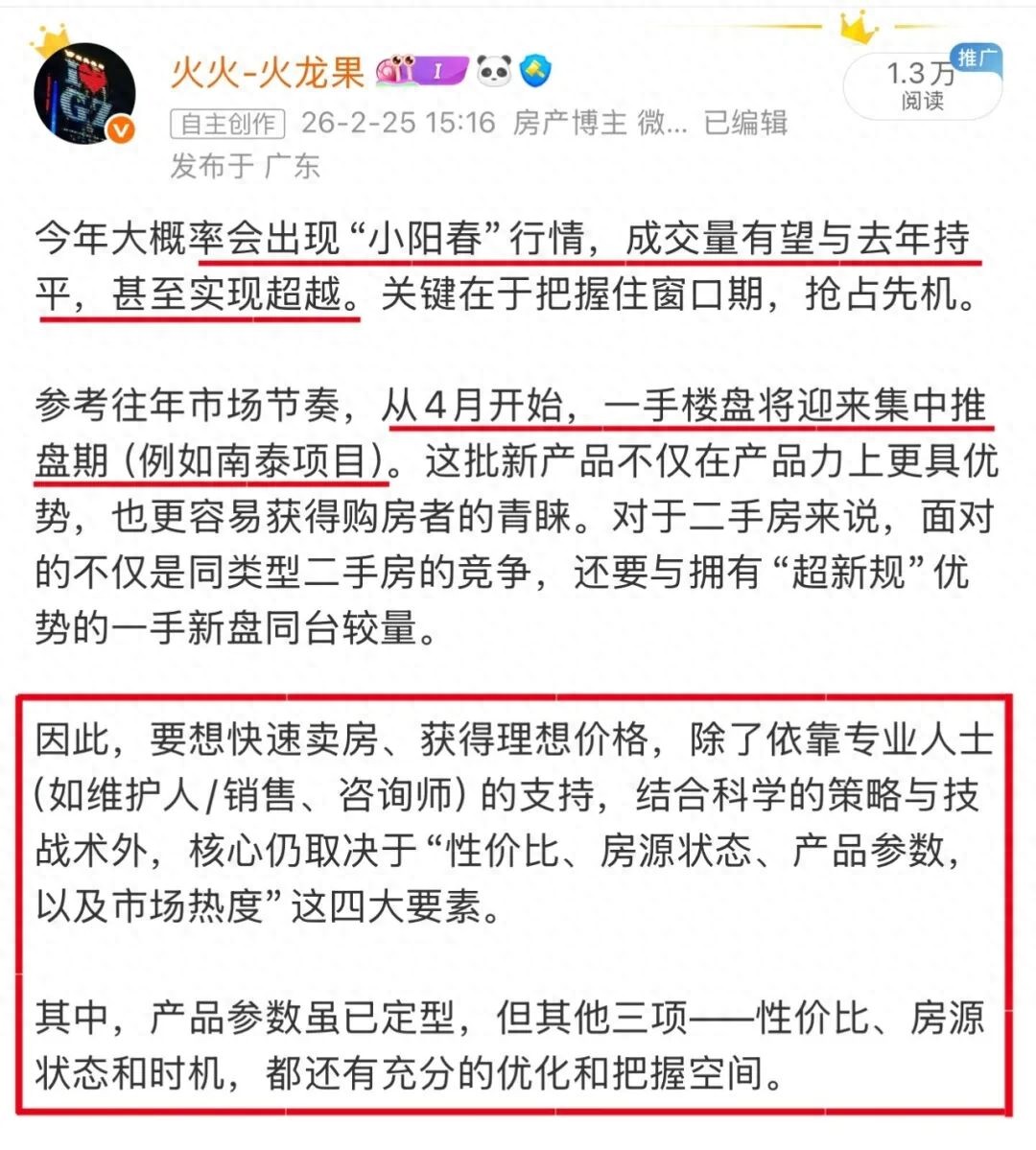 【预判一】今年广州二手楼市“小阳春”的成交量,有望与2025年持平,甚至小幅超越。4月开始,一手房将进入集中推盘期,比如南泰项目。