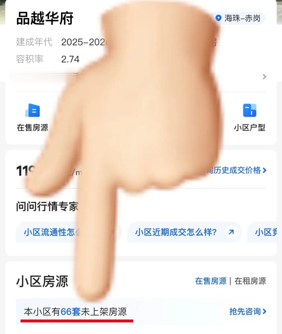 还有一个细节:贝壳挂牌量下降,不等于卖房的人少了。有些资料不完整的房源,根本不在挂牌量里显示。比如:琶洲南TOD(品越华府)