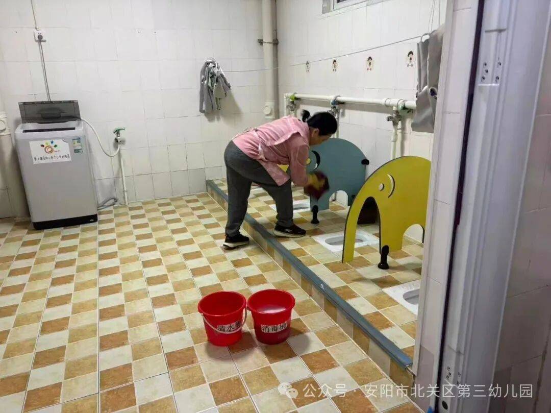 卫生间作为重点场所,保育教师每日增加消毒频次,对洗手池、地面、便池等进行深度清洁。