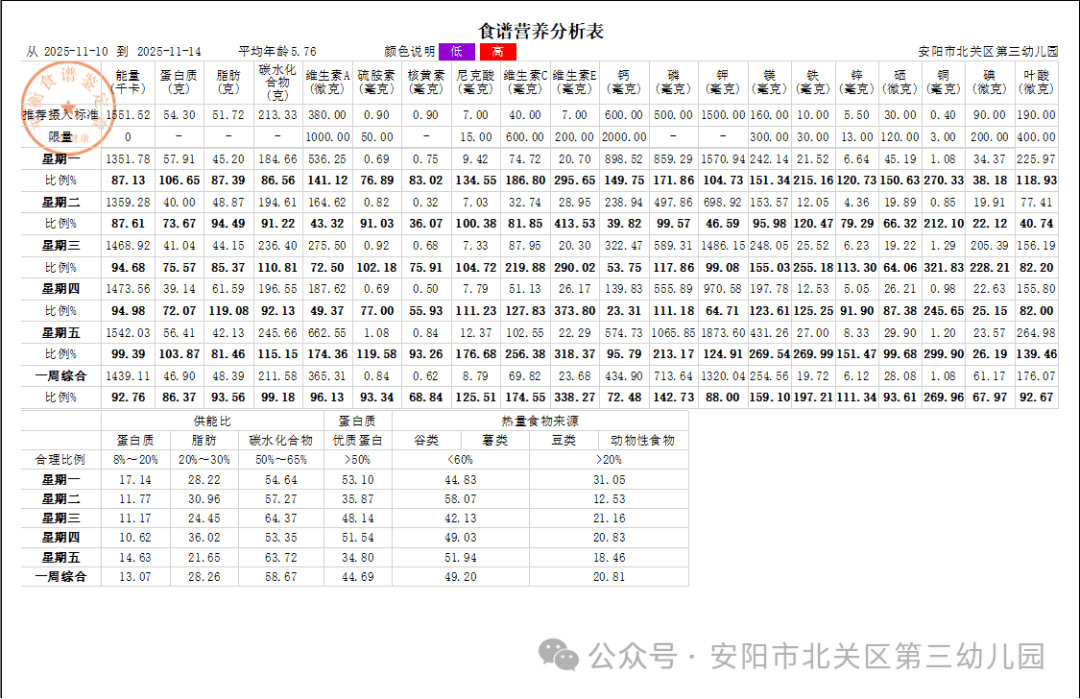 保健医和厨师团队根据幼儿生长发育需求,结合季节特点,共同制定每周带量食谱。