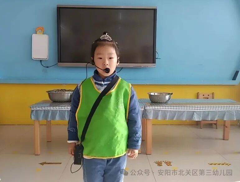 小小报餐员向同伴介绍当日菜品,鼓励孩子们品尝每一种食物,从心底里爱上健康饮食。