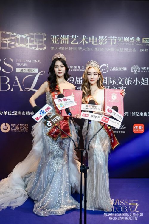 颁奖结束后,深圳赛区人气冠军徐呦呦与深圳赛区冠军钟琳前往媒体墙接受采访,并拍摄媒体合影,分享参赛感受与未来文旅推广计划。至此,第29届环球国际文旅小姐深圳总决赛圆满落幕。