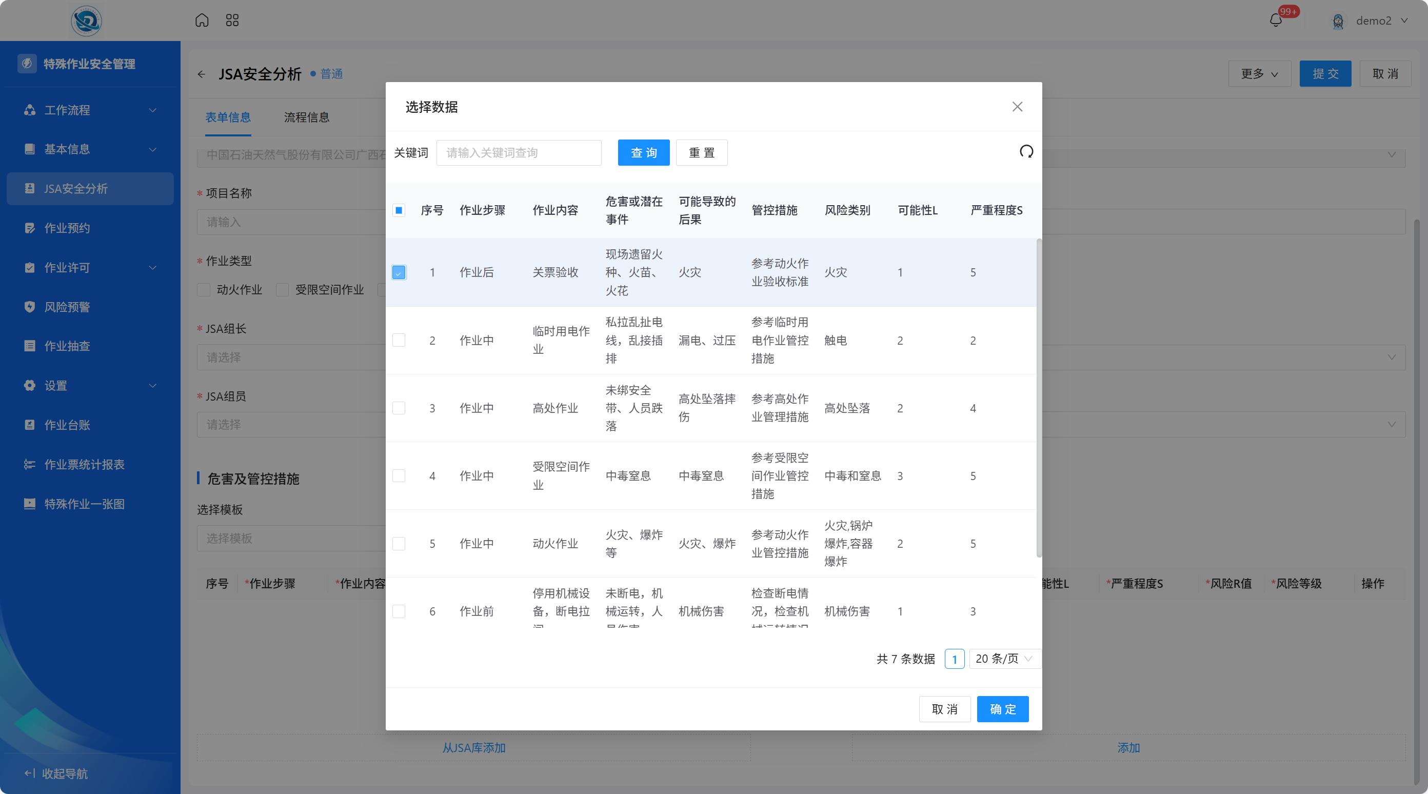 信大科技特殊作业安全管理系统内置JSA安全分析功能