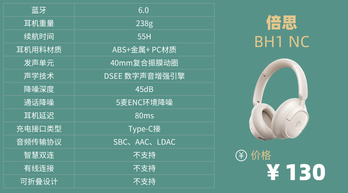 ●产品4、倍 思B H1 NC头戴式降噪耳机