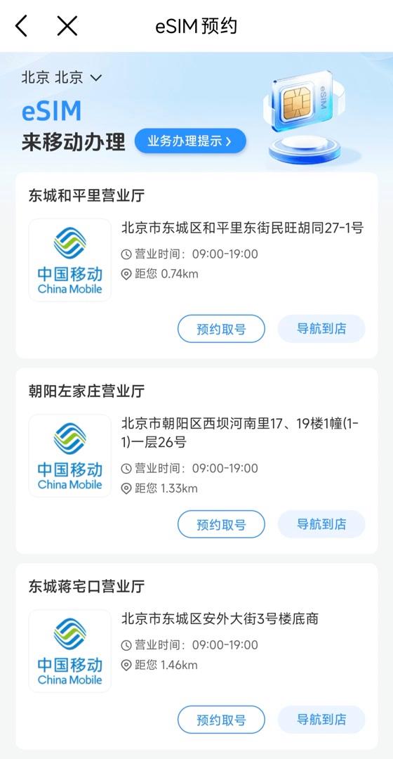 中国移动APP页面显示,同一台eSIM手机最多可开通2个国内运营商的eSIM号码,为用户提供了更灵活的选择。