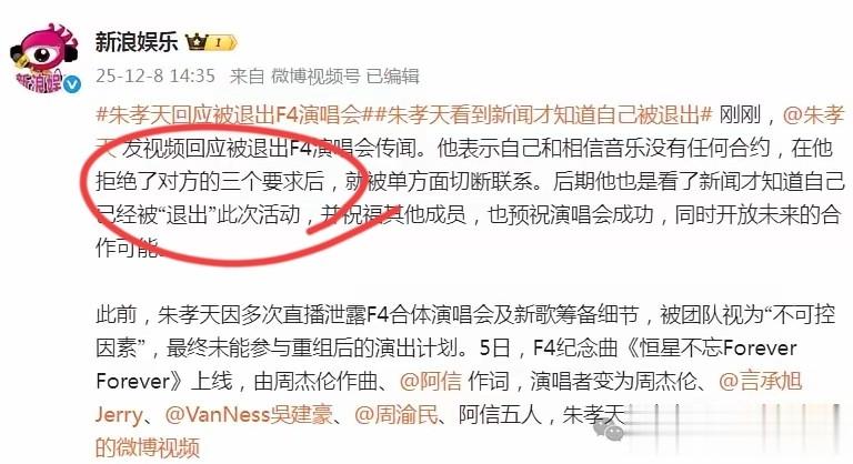 不过网友看热闹不嫌事儿大,就想起在演唱会举办之前,原本公司是希望能够一次性凑齐四个人,让F4能够做到真正的回归,但是没有想到最后到朱孝天这里,给谈崩了。