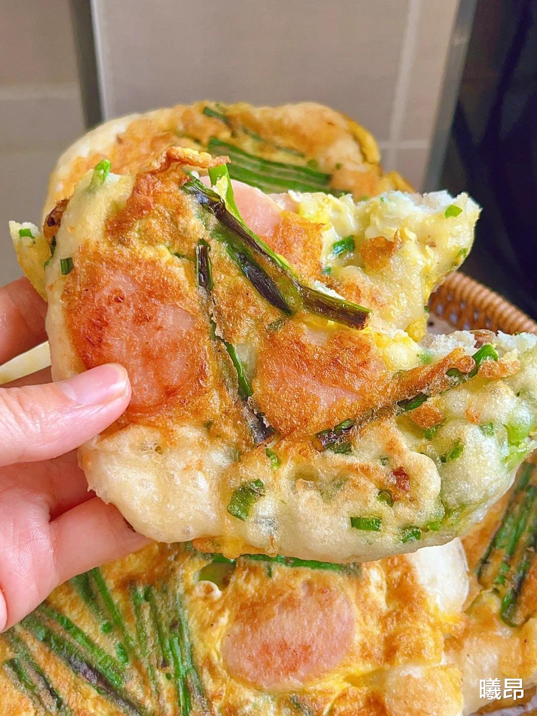 清晨的厨房飘着葱花和烤肠的香气,平底锅上的发面饼正滋滋鼓起,金黄的蛋液顺着饼边微微凝固,用铲子轻轻翻面,外皮带着焦香,内里却松软得能弹起来。咬一口,流心的蛋液混着葱油香和香肠的肉香在嘴里化开,简单又治愈的早餐就这样搞定 —— 这款发面葱油香肠饼不用揉面,搅一搅冷藏发酵,早上煎 10 分钟就出锅,松软到能拉丝,咸香入味根本停不下来,全家早餐光盘的秘诀就在这里!