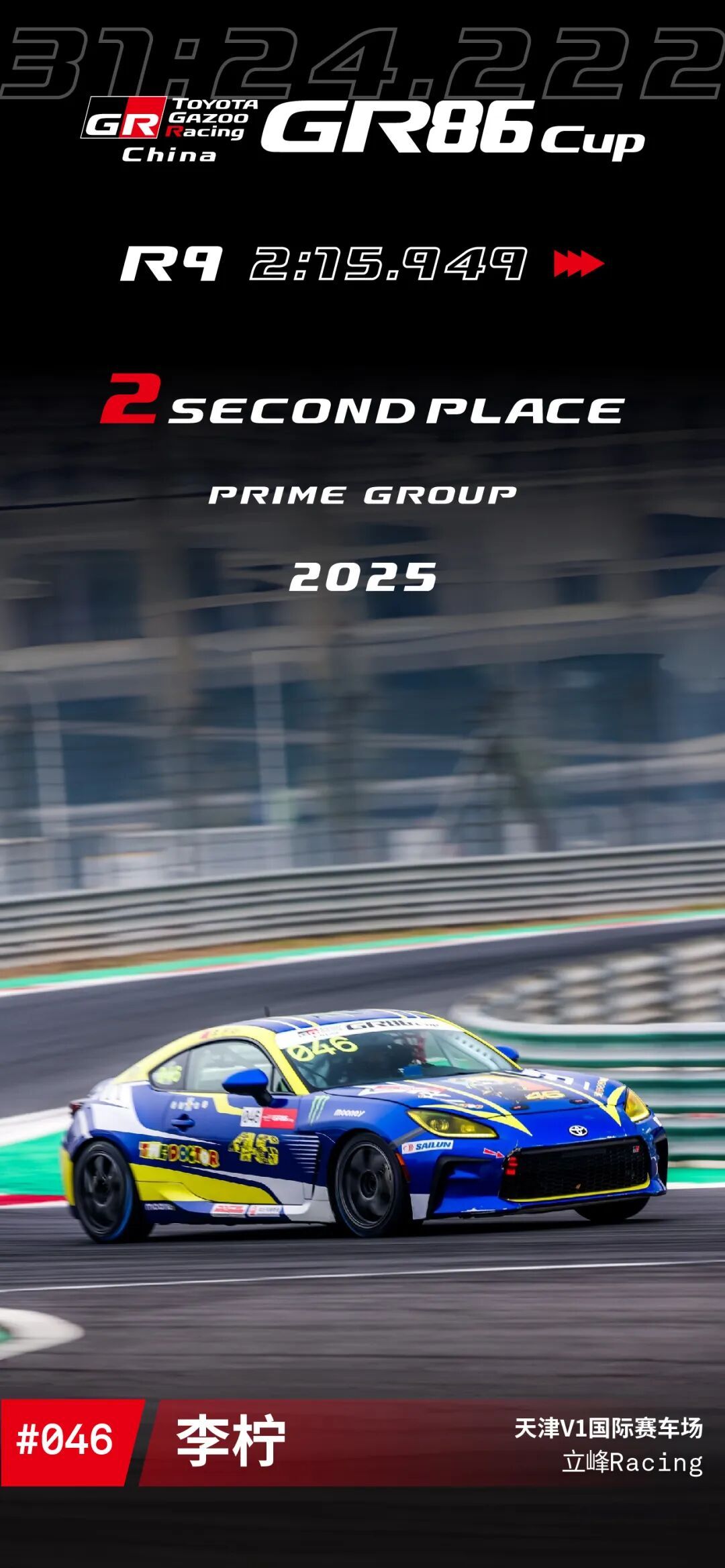 李柠在成都站首秀本赛事,本站勇登颁奖台,他在赛后表达了激动之情:“这是我赛车生涯的第二场比赛,亚军成绩对我意义重大。感谢车队的支持和工程师的付出,也感谢好友谢安的帮助。本场比赛我将所学技巧充分发挥,经历了多次位置交换和超车,是一次难忘的体验。”