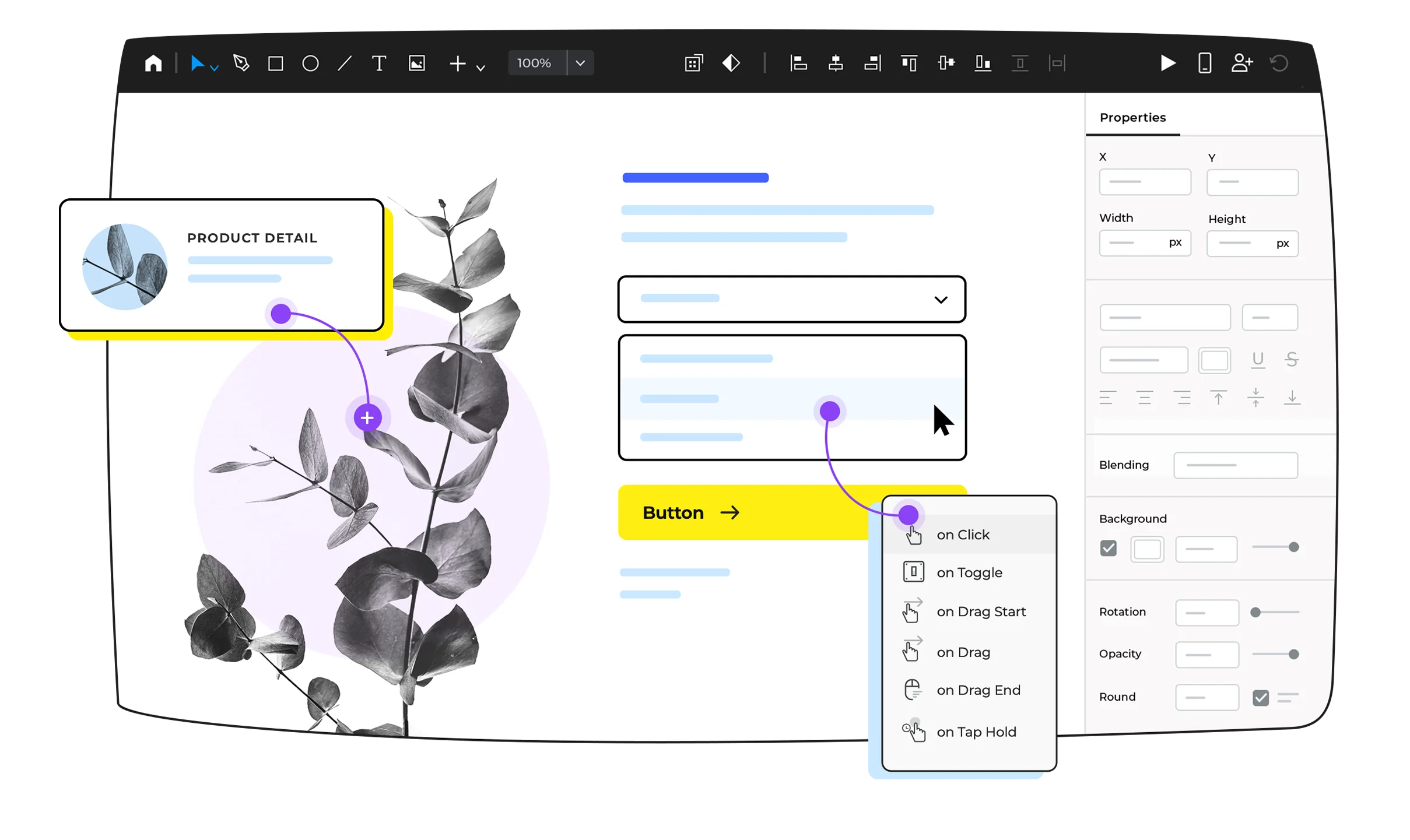 全面的设计工具:涵盖从原型设计到用户测试的整个设计流程,设计师可以使用这些工具创建高保真的交互式原型。