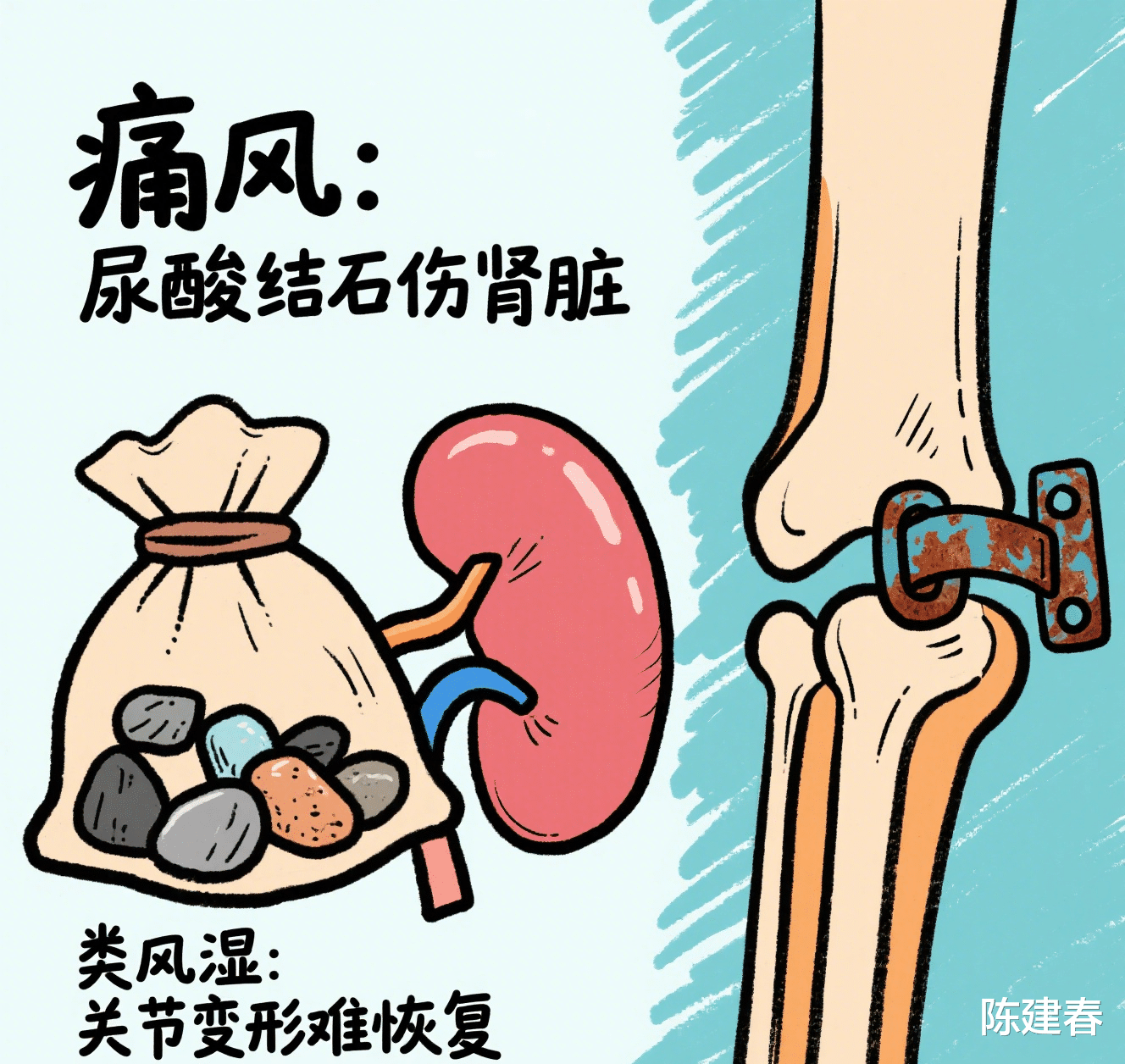 三、并发症:痛风伤 “肾”,类风湿毁 “关节”