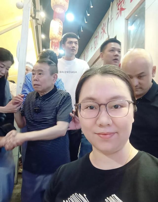 潘长江和女儿在工作人员的带领下,在餐位坐下,周围依然有很多围观的民众不愿离开,大家都拿出手机拍照。