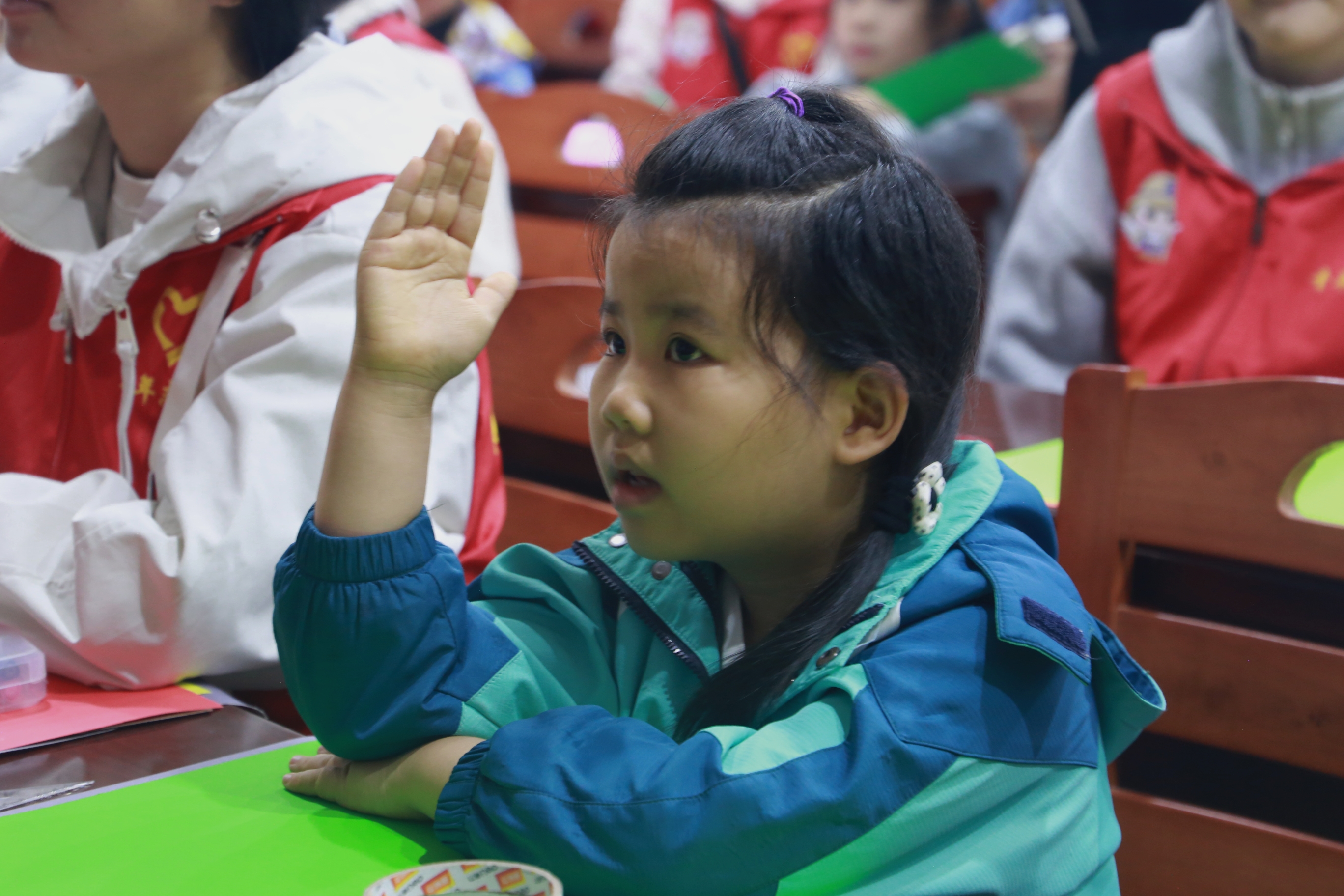 童言描绘心情事,彩笔勾勒情绪图。活动伊始,志愿者小老师通过生动有趣的PPT讲解,引导孩子们认识“开心、生气、难过、害怕”等常见情绪。小老师的课堂上,孩子们积极踊跃,纷纷举手希望分享自己的情绪小故事,周围不时爆发出阵阵掌声。整个分享环节成为了孩子们学习表达情感、增进彼此理解的温暖课堂。这一环节不仅让孩子们对情绪有了初步的认知,更为后续活动奠定了良好的基础。