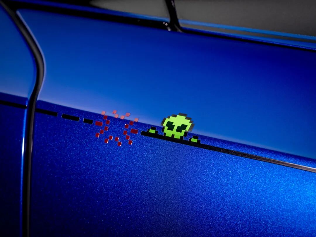 劳斯莱斯并未使用任何特定游戏的图形——很可能是为了避免版权问题——但车内多处出现的“调皮外星人”图案,会让人想起经典的《太空入侵者》。它出现在多个地方,包括外部的车身腰线装饰,这条线由一个个3毫米的独立“像素”构成,令人想起早期游戏的位图图形。