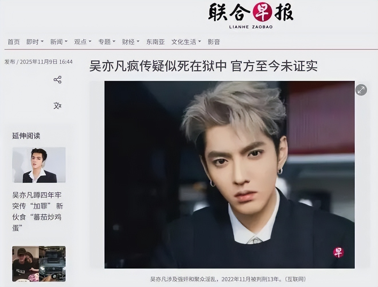 2025 年刚入冬,沉寂快四年的吴亦凡又上 “热搜” 了 —— 这次不是翻红复出,而是外网疯传他在监狱里绝食没了,连 “家人失联”“狱友爆料” 的细节都编得有模有样,可国内网友翻完热搜只觉得眼熟:这不还是老套路吗?