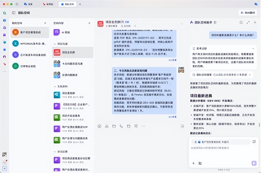 WPS 365此次还推出一站式团队协作工具——团队空间。它支持围绕单个项目或业务部门搭建专属协作空间,聚合团队相关的聊天、文档、会议纪要等数据,实现协作路径的统一、资料管理的集中。