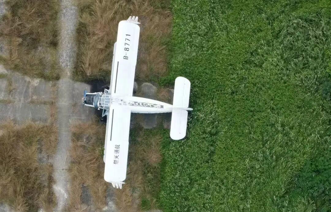 图片将画面拉近,就可以看到,飞机上面写着楚天通航和B—8771的字样。