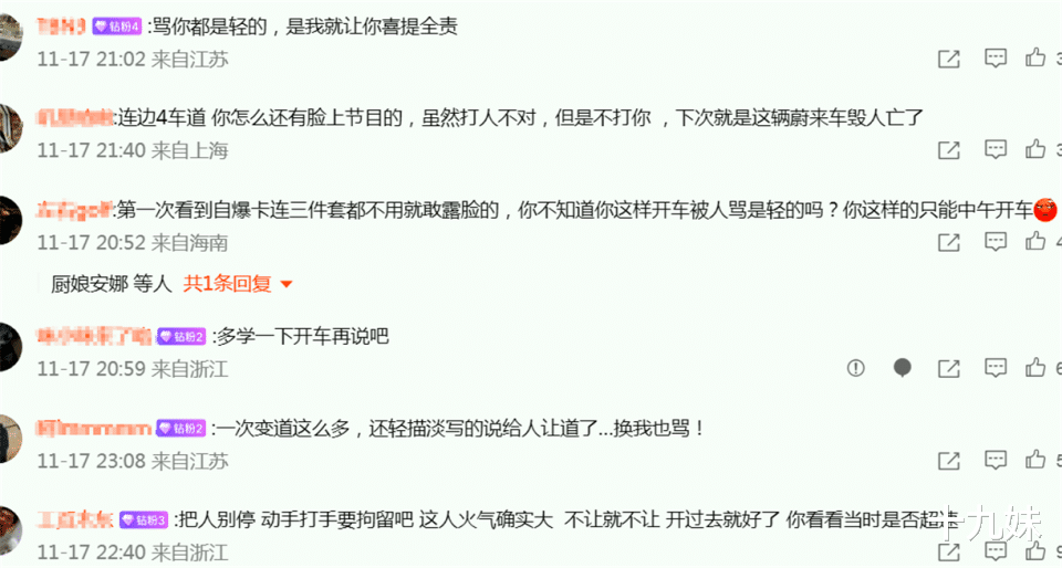 还有人表示:甭管谁对谁错,对方恶意别停,动手打人这两条就已经错了,有理也会变没理,估计会喜提银手镯……