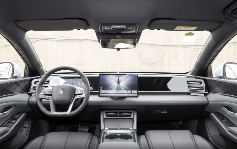 车身尺寸上,全新秦L DM的车长达到了4830毫米,轴距则达到了2790毫米,因此这台车不仅从侧身看上去比较修长,在车内的乘坐空间上,同样是有所保障的,同时针对换挡杆,车辆也换装为了怀挡式的设计,配合平底方向盘,整体的设计更偏向于年轻化,并且车辆还采用了悬浮式的大尺寸显示屏幕,在科技质感上,车辆的表现还是不差的。且在中控屏幕内的功能配置上,全新秦L DM也是比较丰富,基本我们使用的功能,该车都有配备,再加上360°全景影像和全速自适应巡航以及驾驶模式选择等功能,满足我们的日常趣味性还是没啥问题的。