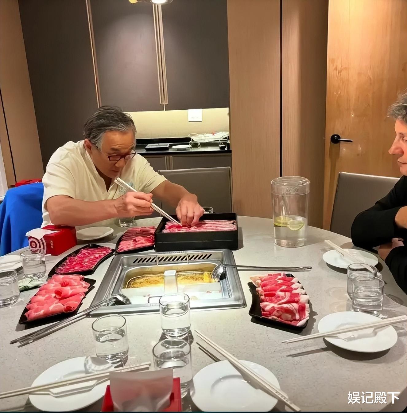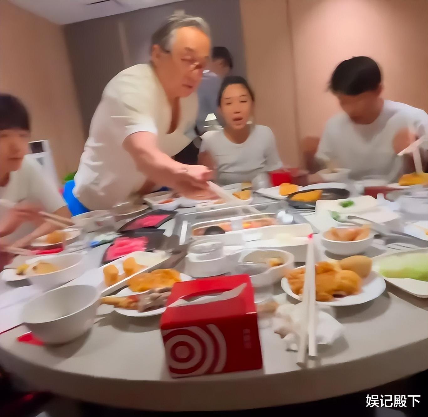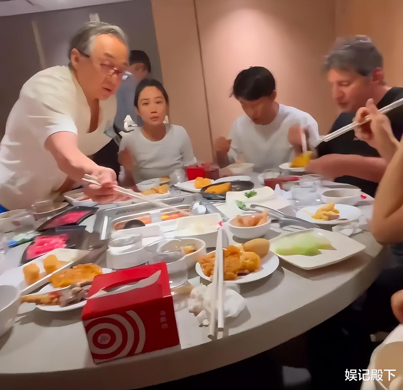 之后的成龙在加拿大餐厅吃饭被网友拍到,当天的他穿着白色衬衫,脸上带着老花镜,已经是退休老大爷的年龄状态了,虽然身边围绕了一桌子吃饭的年轻人,但他仍旧亲自给小辈夹菜。