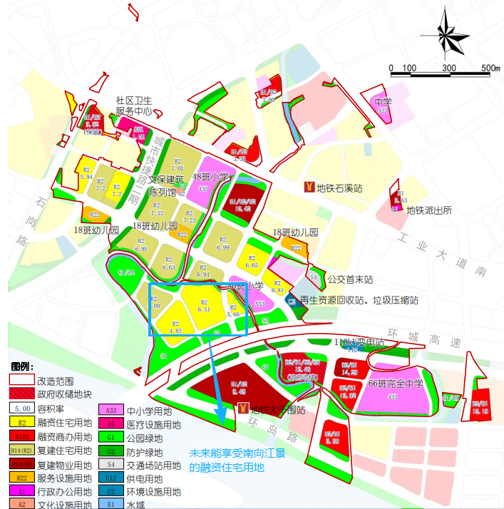 二、新增南向望江豪宅地块,价格或有惊喜根据方案,复建地块的分布较为集中,将大部分靠近石溪地块站的地块留给了村民,但同时也紧挨新规划的城市快捷路。相对来说,融资地块位置更好,其中三宗地块可以享受南向望江,离地铁大干围站也较近。虽然有些许视角遮挡,但南侧的融资商办用地的建筑高度有限,高层单位影响并不大。