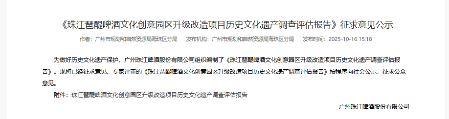 但可以确定的是,新中轴的旧改进度,将会在今年至明年加速推进,未来城市界面将大大提升。不仅是旧村改造,就连琶醍,也有了新进展,将新建总部大楼和酒店!近日,《珠江琶醍啤酒文化创意园区升级改造项目历史文化遗产调查评估报告》在市规划和自然资源局网站上公开征询意见。