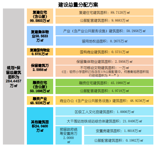一、巨无霸旧改,住宅供应增加此次实施方案,涵盖整个石溪村,改造范围为 101.4408公顷,规划总计容建筑面积 284.4457万㎡。投资方面,总改造成本198.18亿元(含融资地块预估土地使用权出让金35.69 亿元),复建安置资金总额 162.45 亿元。这个体量,称之为巨无霸旧改也不为过。