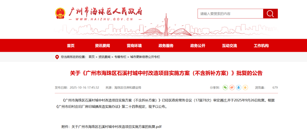 先来说说石溪。2009年就提出要旧改,2017年正式纳入城市更新计划,后来却因多方客观因素一直停滞。近日,海珠政府发布项目最新实施方案的批复公告,预示着这个难产多年的项目,终于有了新进展。