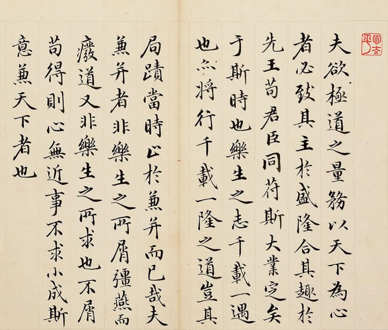 最近不少书友在群里发成亲王这幅小楷册的局部图,我也盯着高清图反复看了好几天。说实在的,这东西第一眼觉得工整,第二眼发现灵动,第三眼才品出里头藏着多少“技术活”。今天咱们就掰开揉碎,聊聊这幅字里那些不容易察觉的书写首段切入:看小楷最怕板滞,成亲王这套册页妙就妙在把唐人写经的筋骨和赵孟頫的流媚揉成了新面团。笔画起笔常带微尖,像毛笔轻轻斜切纸面,这不是随意为之——他用的应该是弹性较好的狼毫,通过调整入纸角度制造这种既利落又不生硬的起笔形态。收笔处偶见回锋,但更多是顺势弹出,在工整中保留着手腕发力的自然轨迹技法解析段落:细看横画的处理特别见功力。多数横画采取仰势,右肩微微上抬,但角度控制在3-5度之间,这个微仰既破除了横画的呆板,又不会像褚遂良那样过于夸张。最精彩的是长横,中间段并非平拖而过,会有细微的提按波动,好比唱歌时的气息颤动,让线条活了起来。这种处理需要极稳的执笔手势,建议练习时可先放大单字到10厘米,体会手腕带动笔杆做细微摆动的竖画的变化更值得玩味。垂露竖的下端往往向左微凸,形成饱满的“水滴状”,这要求收笔时先稍顿再回锋。悬针竖则多用在右侧,出锋前会有个不易察觉的蓄势动作,就像射箭前先往后拉弦。我试验过,要写出这种效果,中指推笔的力度要拿捏得特别精准结构分析段落:成亲王处理偏旁部首时很会“做平衡”。比如“彳”旁的两撇,上撇短促下撇舒展开,竖画则向右微弓,制造与右侧部首的呼应关系。“辶”的平捺写得尤其聪明,起笔藏在左侧部首的腰线位置,中间段上沿保持平直,下沿缓缓铺毫,到最后突然收薄弹出,整个动作一气呵成。这种结构处理让复杂字形变得通透,初学者可重点模仿这几个典型偏旁章法排布暗藏玄机。纵列保持垂直,但横列故意做得参差,字距宽松而行距紧凑,形成独特的呼吸节奏。更妙的是他会通过某些字的纵向伸展(比如“神”字的竖勾拉长)来打破方块构图,这种“破局”意识在明清小楷里十分难得。临写时要特别注意字与字之间的虚实呼应,不要只顾单个字的美实操建议段落:建议分三步临习这套册页:先用透明白纸覆盖在打印件上描摹,重点感受笔锋转换的细节;再对着字帖仿写,每字反复练习直到掌握结构规律;最后背临整段文字,检验自己对空间布局的理解。特别注意他处理相同偏旁时的微妙变化,比如“心”字底在不同字里的卧钩角度差异,这恰恰是避免机械重复工具选择上,推荐用短锋狼毫配半生熟宣纸。墨要磨得略浓些,这样写精细笔画时不易洇散。执笔可比平常略高半寸,给手指更多活动空间。如果某个笔画总是写不到位,不妨站起来悬肘书写,往往能突然开进阶技巧段落:成亲王最厉害的是对“虚”处的掌控。观察“口”部左上角的留白,他常让横画起笔稍微离开竖画,留出个小缺口,这个细节让封闭结构有了透气感。在撇捺交叉时,交叉点通常偏上,下部留出更大空间,这种“上紧下松”的处理让字形显得挺拔墨色控制也很有讲究。通篇看下来,墨色浓淡变化在15%左右,不会突然出现枯笔,说明他蘸墨的频率和量都很稳定。我们在创作时要注意,写完三到四个字就该重新蘸墨,保持线条的饱满度。特别是转折处的内擫笔法,必须用足够润的墨才能写出圆劲效果。
