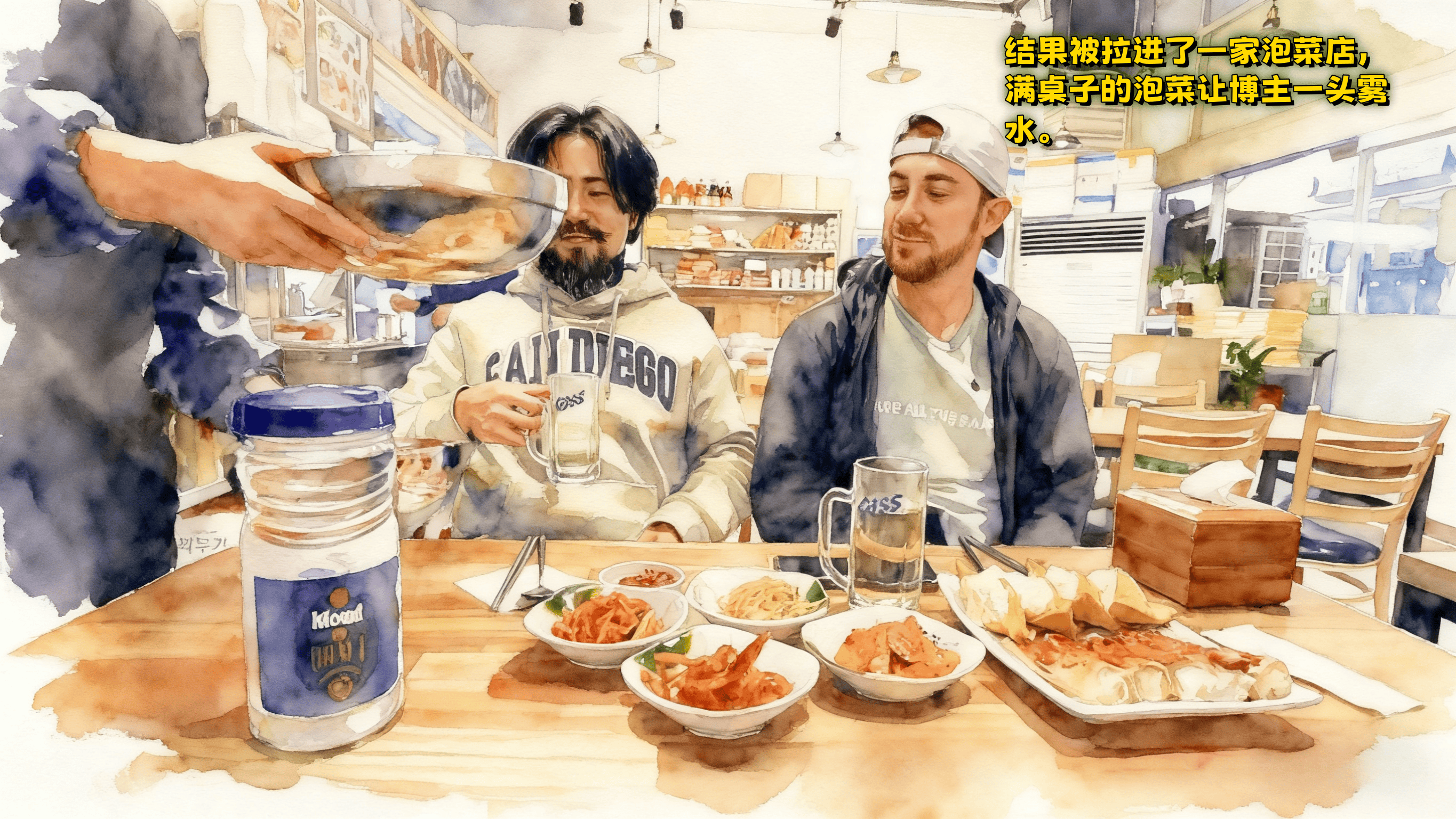 结果被拉进了一家泡菜店,满桌子的泡菜让博主一头雾水。