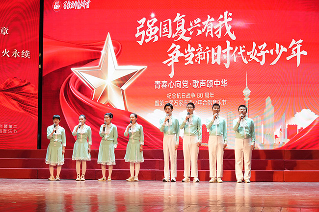 10月22日至23日,石家庄市青少年宫会堂内歌声如潮,由共青团石家庄市委、石家庄市教育局、石家庄市关工委、石家庄市少工委联合主办,石家庄市青少年宫承办的“强国复兴有我 争当新时代好少年——‘青春心向党·歌声颂中华’纪念抗日战争80周年暨第二届石家庄青少年合唱音乐节”四场音乐会盛大举行。40余所石家庄市中、小学校从近百所报名学校中脱颖而出,1600余名师生用激昂旋律致敬历史,以青春之声赓续红色血脉,献礼民族复兴新征程。