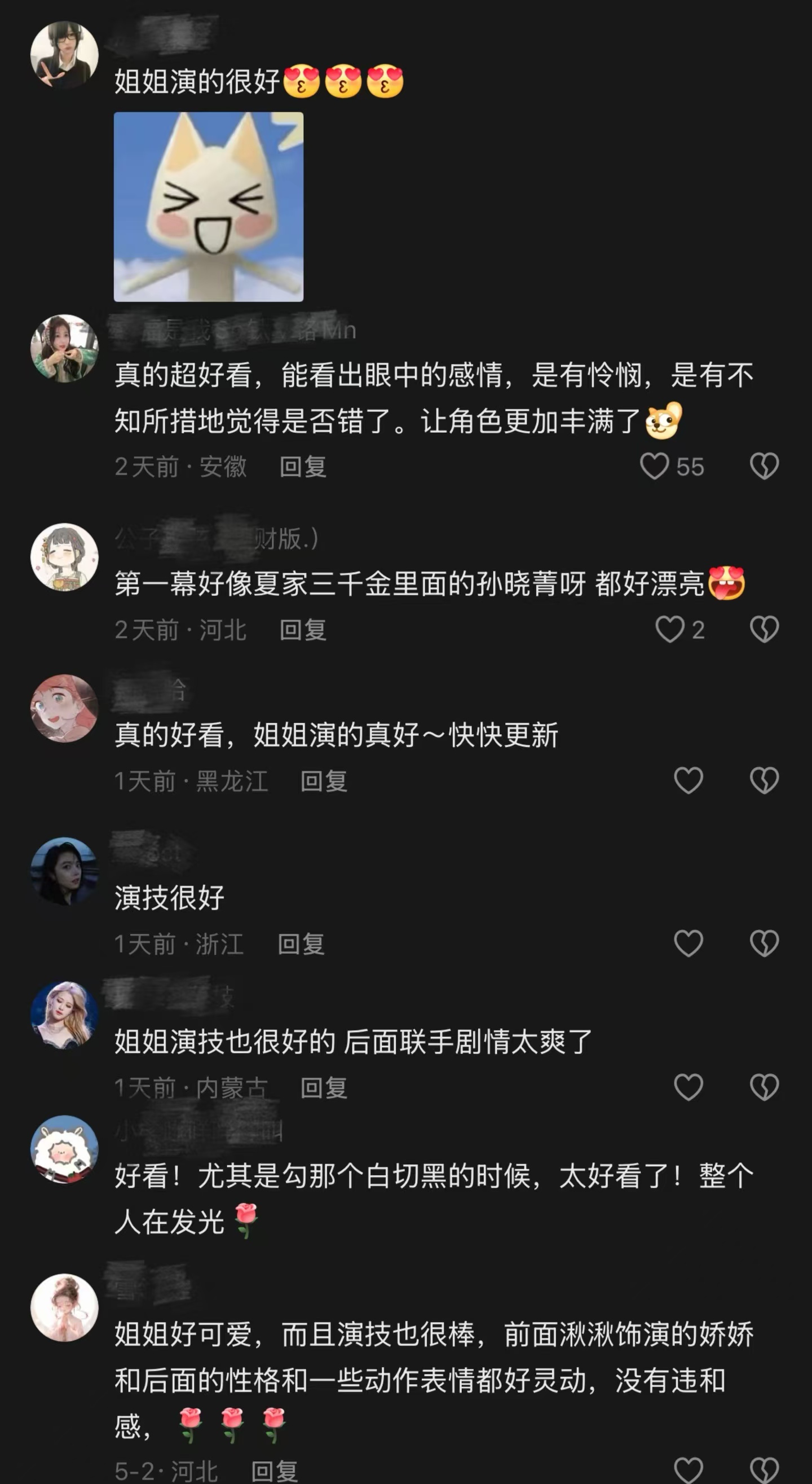 毕业于中央戏剧学院的孙箫涵,作为新人演员首演“恶女”,她表示《姜颂》在播出前,很担心自己会被网友抨击,该剧上线后孙箫涵却获得无数好评,她曾自嘲:姜娇娇依赖男性救赎的失败模式,就是恋爱脑警示录中的典范,希望大家都能活出精彩的自己。