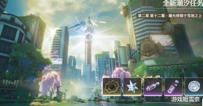 新主线潮汐任务,二章十二幕曙光停摆于荒地之上,二章幕间星光流转于眼眸之间,围绕新地图时缝废都 穗波城展开。