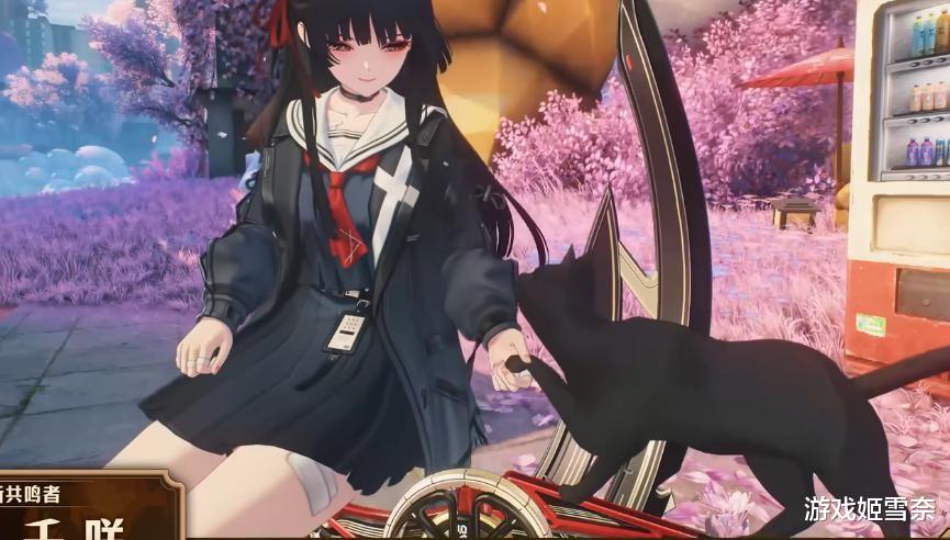 上半大伙都知道的黑长直千咲,五星湮灭长刃,前瞻说意外来到这座城市的,理科优等生,能力是解析物品脆弱点并进行精准干涉。战斗演示给怪猎玩家看嗨了,剪刀还能变盾斧打超解,这大电锯,你看这事整的,我抽还不行吗,哦还有一个萌点是千咲总是跟小黑猫一起出现,在待机里还有撸猫可爱捏。千咲的专武大剪刀昙切,武器上闪烁着牵扯结构的弦线还漂浮着公式,如果理科生犯中二病这充满视觉冲击力的大剪刀绝对是理想型。