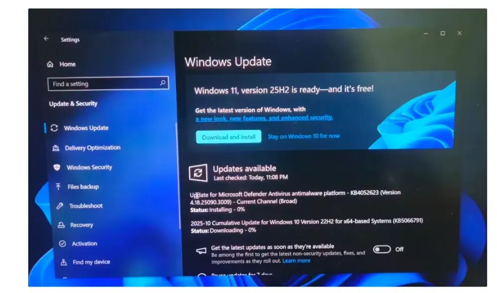 据悉,Windows 10 用户选择升级后,系统跳过了 24H2 或 23H2 等早前版本,将直接安装 Windows 11 25H2(即 Windows 11 2025 Update)。