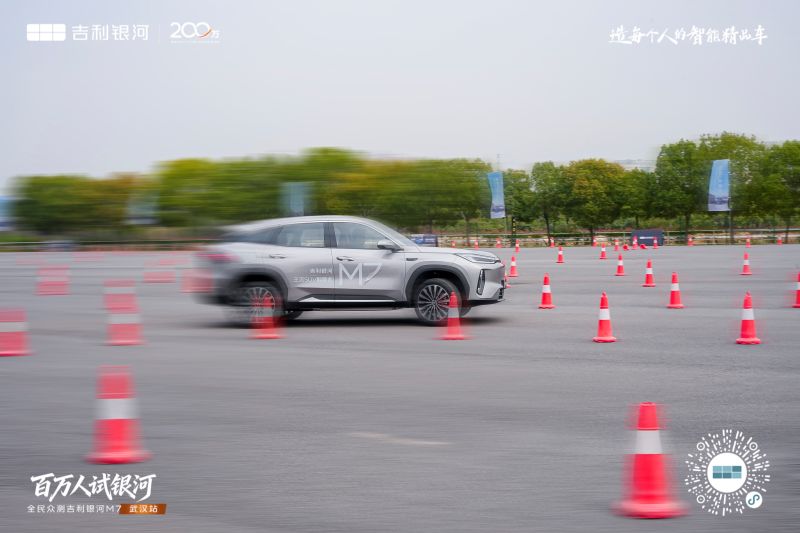起步、加速,为安全起见,我还是有所保留,以时速80公里的速度冲向模拟障碍,快速打方向左右紧急避让——那一刻,我准备迎接剧烈侧倾和轮胎嘶叫。但很快,我发现,我驾驶的吉利银河M7让我深感意外。从始至终,吉利银河M7车身异常稳定,转向精准,车尾跟随利落,整套动作一气呵成。这不是简单的“稳”,而是底盘、悬挂(前麦弗逊+后多连杆)与G-TCS智能防滑系统协同工作的结果,是经过全球顶尖团队反复调校的扎实功底。