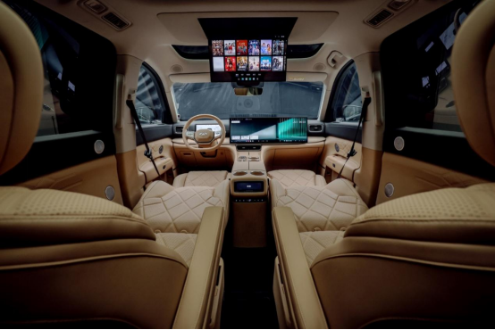 坐进车内,风云T11在用料上展现出“百万级诚意”。车内配备30吋一体寰宇屏与17.3吋后舱娱乐屏,均采用超薄窄边框设计,支持6K超清显示,为家人带来IMAX级双屏视觉盛宴;一二排舒云座椅采用13层复合结构与50D高回弹海绵,二排更具备一键零重力模式,腿部空间最大拓展至1022mm,驾乘体验更舒适;9.2L冷暖冰箱、256色音乐律动氛围灯、3种可调香氛等配置,进一步提升了座舱的豪华质感与实用功能;40处储物空间、798L后备箱容积以及语音控制一键拓展1.8m大床等功能,也充分满足了家庭出行、露营等多场景需求。