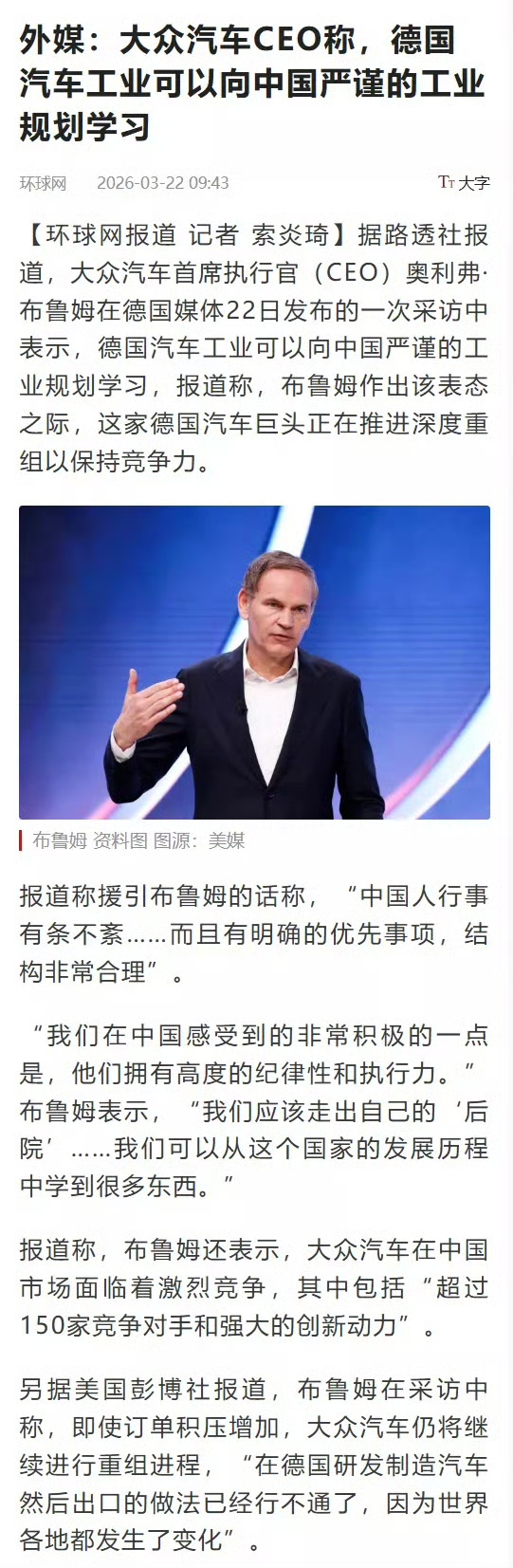 中国网友对布鲁姆表态的讨论呈现两极:一方面调侃“油纸包”“倒反天罡”等历史梗,反映“师徒角色互换”的戏剧性;另一方面理性探讨产业规划模式的可复制性,指出德国需解决“工会制度僵化”与“政策连续性不足”等结构性障碍。行业观察者强调,中国汽车业的崛起本质是“系统性打法”的胜利——政策连贯性、市场竞争强度与研发投入力度共同构建了新竞争力。