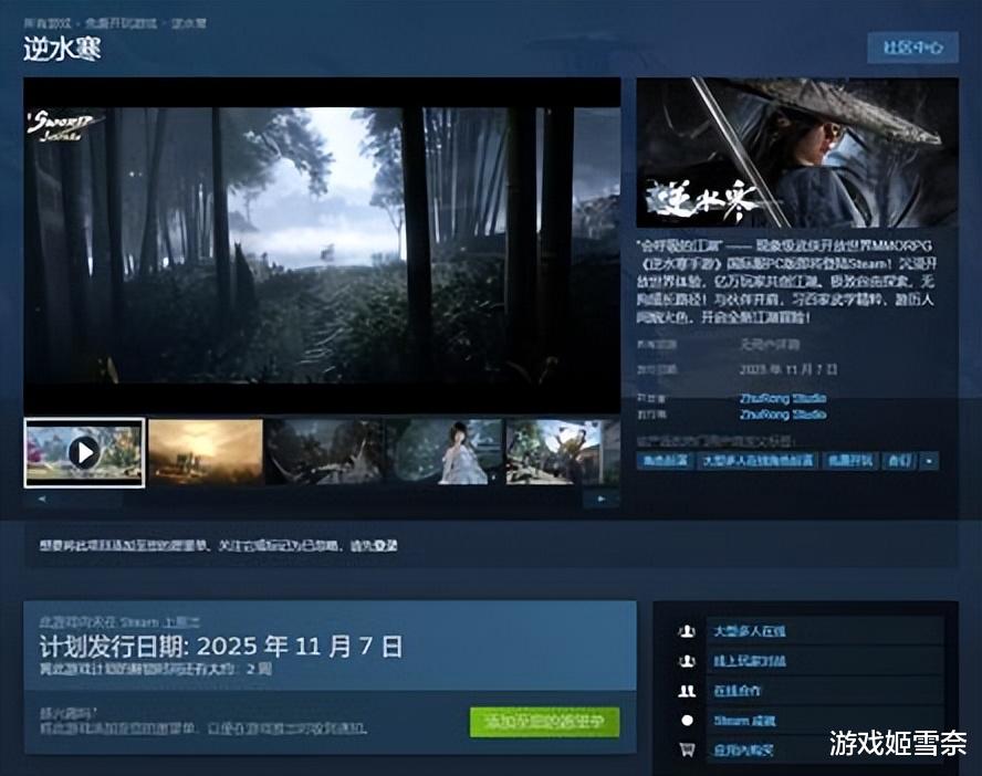 11月7日《逆水寒》手游国际服将正式发售,PC版本也将同步上架steam,这在同类武侠MMO游戏中绝对是头一个,寒子居然背着我们偷偷干大事!